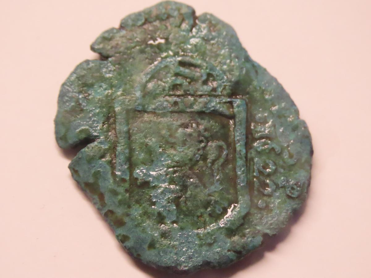 Entre los elementos visibles destaca un escuro central «muy erosionado con campos internos apenas visibles», en lo que podría ser un posible busto o perfil residual. Sin embargo, en el reveso aparece un «castillo o motivo arquitectónico, característico del cuartel de Castilla» con la fecha de 1622 inscrita en su perímetro. Esto encaja con las numerosas monedas de cobre emitidas en dicho año en Segovia, Valladolid, Cuenca o Madrid.